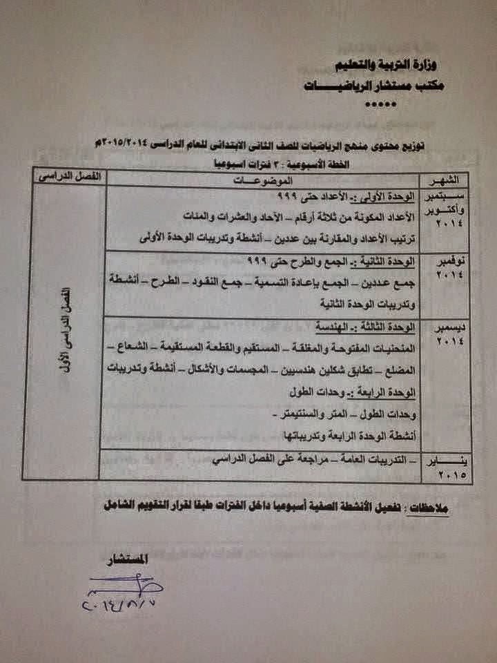 قناة طارق النجار التعليمية توزيع منهج الرياضيات للصف الثاني الابتدائي الترمين 2014 2015
