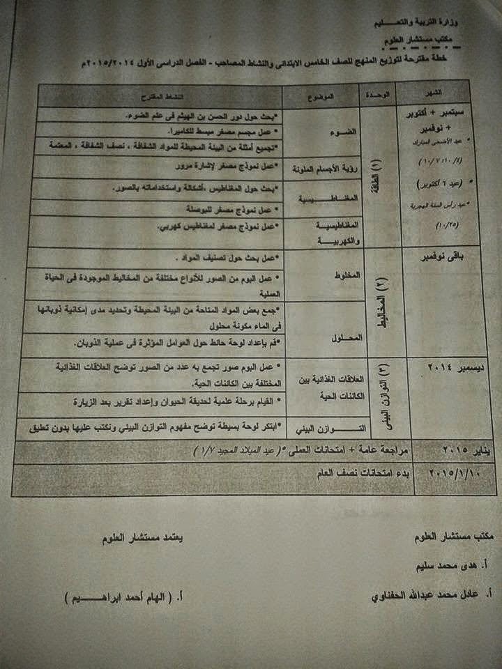 قناة طارق النجار التعليمية توزيع منهج العلوم للصف الخامس الابتدائي الترم الاول 2014 2015