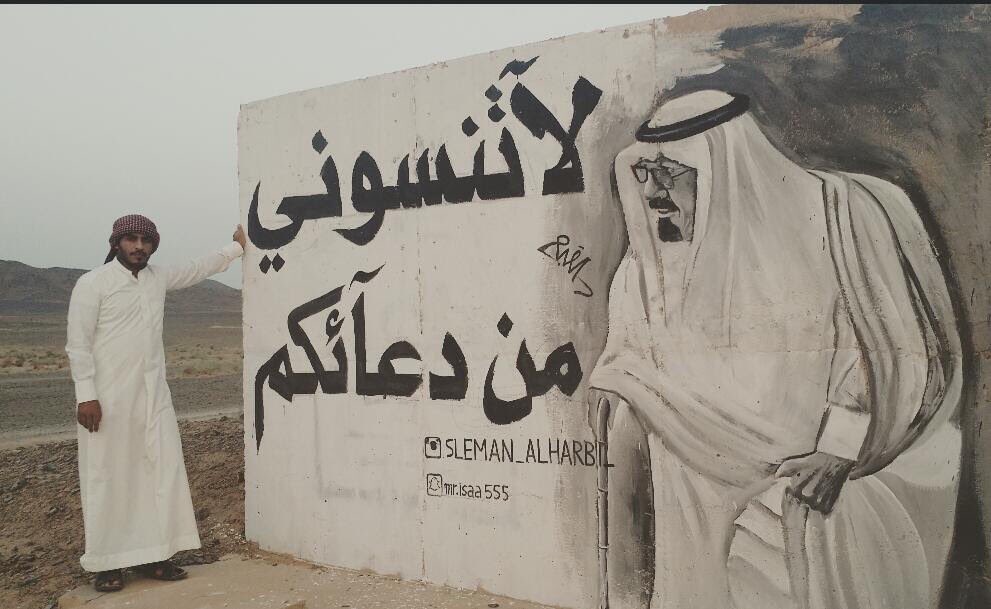 الحربي يعبر عن شوقة للملك الراحل بلوحة لاتنسوني من دعائكم عسير