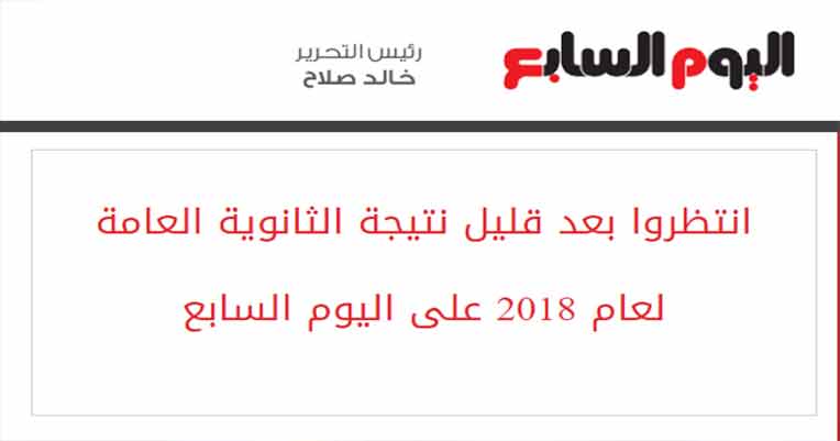 رابط موقع اليوم السابع ينشر نتيجة الثانوية العامة 2018