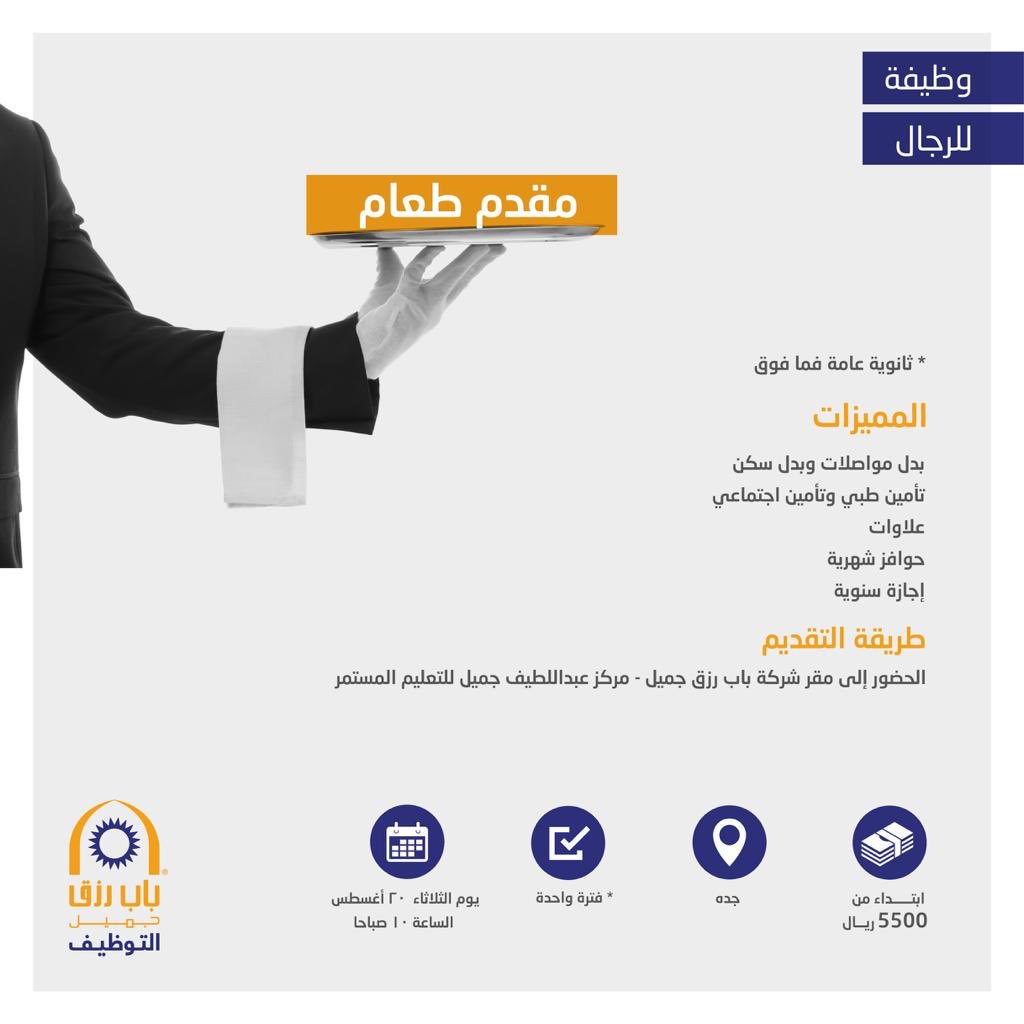 باب رزق جميل Bab Rizq Jameel On Twitter وظائف للرجال و للنساء طاقم خدمة مطاعم المؤهلات ثانوية عامة وما فوق المنطقة جدة الراتب ٤٥٠٠ ريال لتقديم الطلبات الحضور لمقر شركة