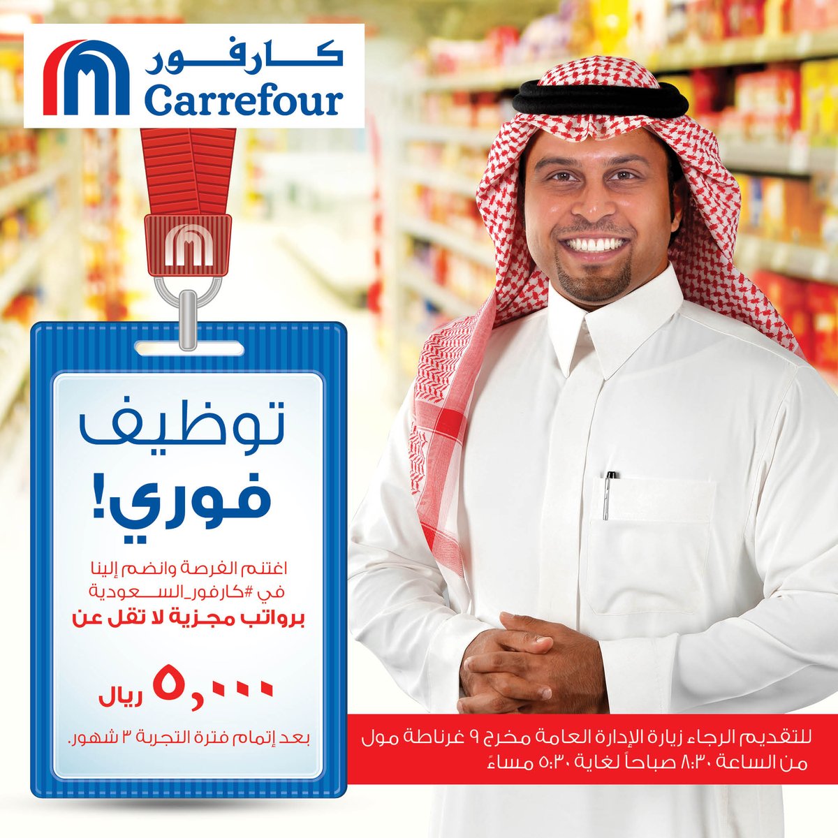كارفور السعودية Twitterissa توظيف فوري للسعوديين في كارفور السعودية تقد م بطلبك الآن بالإدارة العامة مخرج 9 بين 8 30 صباح ا و 5 30 مساء