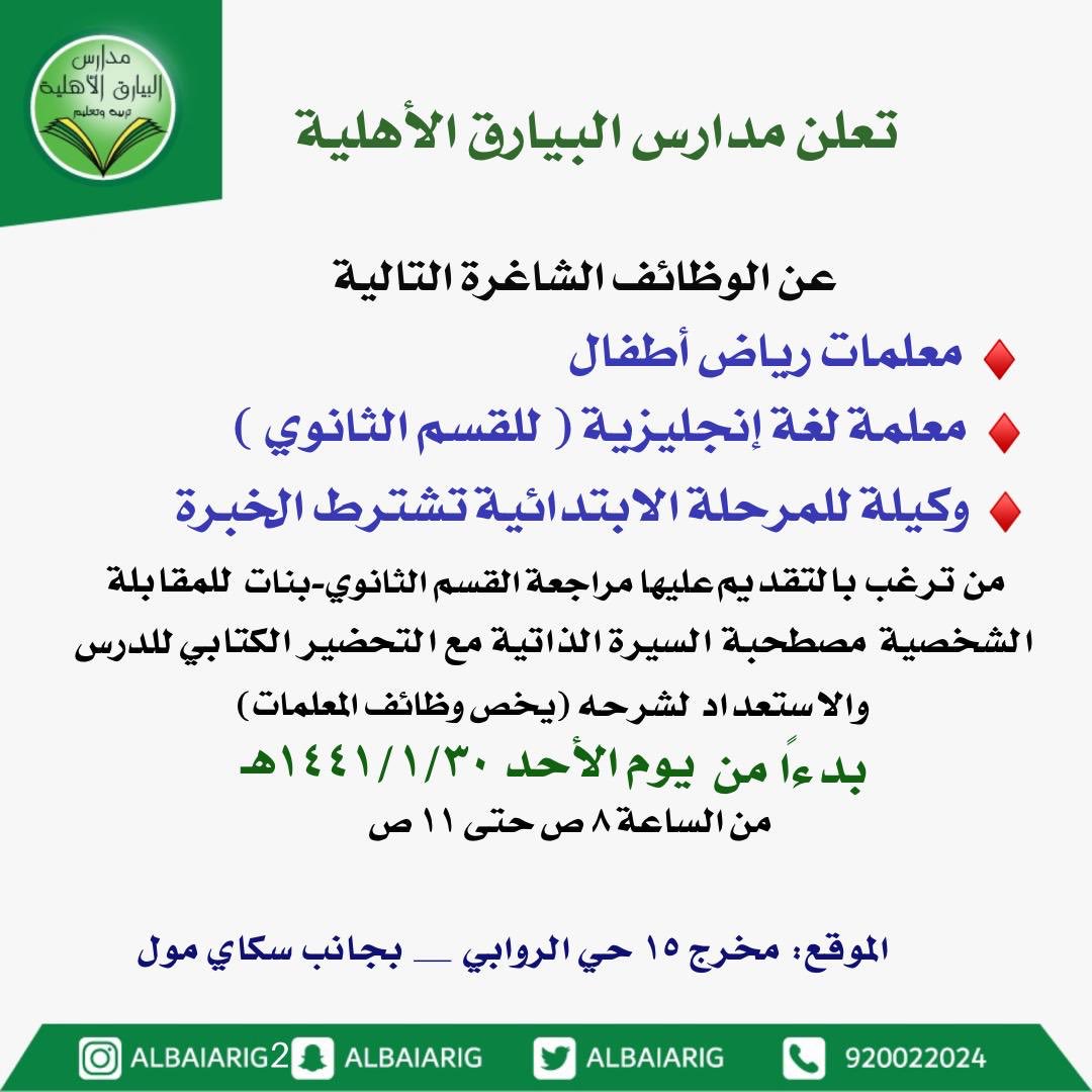 مدارس البيارق الأهلية على تويتر وظائف شاغرة مدارس البيارق الأهلية مدارس اهليه وظائف فرص عمل وظائف شاغرة وزارة التعليم تعليم الرياض وظيفة مكتب الروابي خريجين Https T Co Vsfljl0ox1
