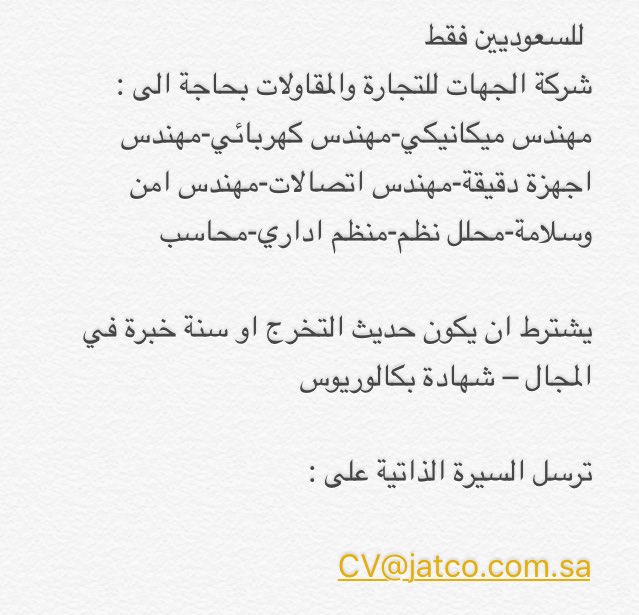 وظائف للمهندسين السعوديين On Twitter وظائف هندسية لحديثي التخرج او خبرة سنة بـ المنطقة الشرقية Cv Jatco Com Sa Https T Co 8elqbfe4st